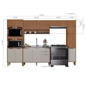 Medida de cada item (A x L x P): kit forno; 217x70x50 balcao 120: 80x120x50 armario 120: 61x120x30 armario gel: 30x80x30 paneleiro: 217x40x30