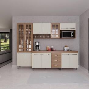QUANTIDADE DE PEÇAS: 5 | QUANTIDADE DE GAVETAS: 3 | QUANTIDADE DE PORTAS: 13 | ALTURA (CM): 204,5 | LARGURA (CM): 260 | PROFUNDIDADE (CM): 53 | MATERIAL: MDP | TAMPO DO BALCÃO INCLUSO: SIM | Cor: Marrom