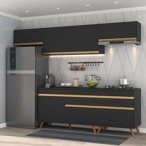 Conteúdo da Embalagem: 1 (um) armário aéreo 120cm 1 (um) balcão com tampo 120cm 1 (um) balcão com tampo 70 cm 2 (dois) armários aéreos 70 cm