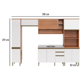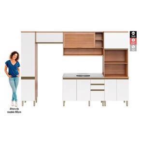 A Cozinha Completa Macadâmia possui a estética e funcionalidade semelhante ao móvel planejado, porém com as vantagens de ser mais acessível, já estar pronta para levar para casa e ser montada da forma que você preferir. Possui excelente espaço interno e é composta por ferragens e acessórios de excelente qualidade: as portas são equipadas com dobradiças com caneco de 35mm e sistema de amortecimento slow motion – para garantir movimentos mais suaves na abertura e fechamento; já as basculantes possuem pistão a gás – um componente que garante sustentação e segurança na usabilidade. As gavetas contam com corrediças telescópicas – sinônimo de firmeza, deslizamento mais suave e abertura de extração total – e divisor de talheres. O Paneleiro Torre Quente é robusto e perfeito para manter os eletros ao alcance das mãos. Já o Paneleiro na versão mais compacta possui ótima capacidade interna para acomodação de itens variados. O Armário possui porta basculante ripada, no famoso estilo veneziano, e nichos para acomodar itens especiais. O Balcão para pia conta ainda com uma gaveta de laterais e fundos super altos, proporcionando mais segurança na organização. O estilo planejado e toda a qualidade da Cozinha Completa Macadâmia são perfeitos para a sua casa. Acabamento da Prateleira: Finish Foil Escala de Brilho da Prateleira: Semi-Brilho Acabamento da Gaveta: Finish Foil Escala de Brilho da Gaveta: Semi-Brilho Acabamento da Porta: Finish Foil Escala de Brilho da Porta: Semi-Brilho Acabamento: Finish Foil Acabamento dos Pés: Polipropileno Acompanha Tampo: Não Altura dos Pés: 17 cm Ambiente Principal: Cozinha Complexidade da Montagem: Média: pode ser montado por mais de uma pessoa e/ou necessite de maior conhecimento para montagem Cor: Freijó/Branco Cor do Produto: Freijó/Branco Cor Interna: Freijó Escala de Brilho: Semi-Brilho Gaveta com Chave: Não Itens Inclusos: Manual de Montagem Manual de Montagem e Instalação: https://cdn2.madeiramadeira.com.br/atributo/telasul/1308084-914426-01.pdf Material da Dobradiça/Corrediça da Porta: Aço Material da Gaveta: MDP Material da Porta: MDP Material da Prateleira: MDP Material dos Pés: Polipropileno Medida de cada item (A x L x P): Paneleiro: 217 cm x 40 cm x 52 cm; Paneleiro: 217 cm x 70 cm x 52 cm; Armário: 36 cm x 80 cm x 31 cm; Armário: 72,5 cm x 120 cm x 31 cm; Balcão: 84 cm x 120 cm x 50,5 cm; Necessita Montagem: Sim O Balcão Acompanha Pia: Não Origem do Produto: Nacional Pés Reguláveis: Sim Peso: 159,6 kg Peso Máximo por Gaveta: 3 kg Peso Máximo por Prateleira: 12 Possui Pés: 13 Possui Portas: 09 Possui Prateleiras: 07 Possui recorte para Cooktop: Não Possui Rodízio: Não Recomendações de Uso, Manutenção e Limpeza: Na limpeza, utilizar pano macio levemente umedecido em água e sabão neutro. Após, secar para evitar mofo no produto.Nunca utilizar álcool ou produtos abrasivos e, principalmente, esponjas de aço ou qualquer material que arranhe a superfície.Evitar o armazenamento de substância ácidas (sal, vinagre, limão, cebola, etc) em contato direto com o móvel. Sapatas Niveladoras: Não Sistema de Montagem: Parafuso, cavilha, prego, Minifix Suporta Até (kg): 282 kg Tamanho Indicado da Pia: 120 Tamanho Indicado do Tampo: Não se aplica Tipo de Corrediça da Gaveta: Telescópica Tipo de Dobradiça da Porta: Soft close Tipo de Porta: Misto (Bater e Basculante) Tipo de Puxador da Gaveta: Embutido Tipo de Puxador da Porta: Embutido