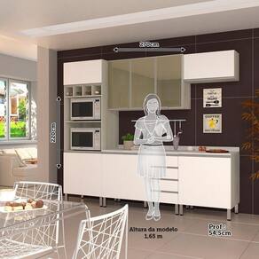 Uma cozinha modulada completa para deixar seu ambiente super aconchegante e requintado. Cuidadosamente pensadas para sua organizacao, a Cozinha Lis conta com acessorios requintados como puxadores em perfil aluminio tipo gola, corredicas metalicas telescopicas para abertura total das gavetas e dobradicas slow motion permitindo o fechamento mais suave das portas.