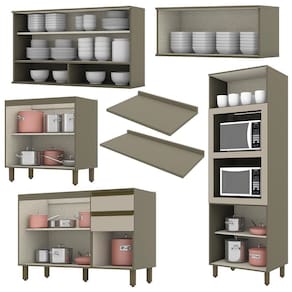 Cozinha Completa 5 Peças Connect com Torre Quente e Aéreo Vidro - Móveis Henn
