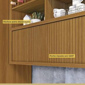 O armário aéreo de 1,20, foi projeto com uma porta articulada ripada, que traz aconchego, grande beleza e harmonia ao conjunto.