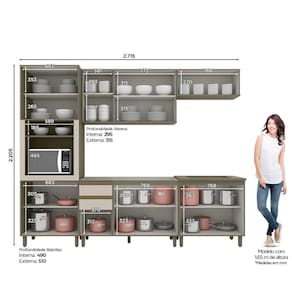Medida de cada item (A x L x P): 1 Torre Quente:(AxLxP) 220,5cm X 71,5cm X 51cm 1 Aéreo basculante: (AxLxP) 34cm X 80cm X 31,5cm 1 Balcao Pia: (AxLxP) 82cm X 120cm X 51cm 1 Aéreo 3 Portas: (AxLxP) 67,5cm X 120cm X 31,5cm 1 Balcao 2 Portas: (AxLxP) 82cm X 80cm X 51cm
