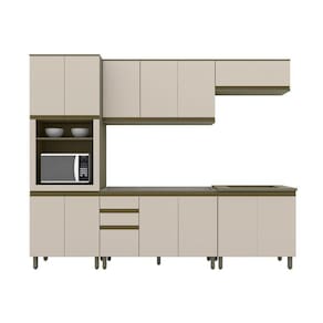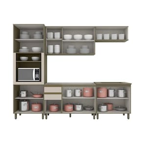 Itens Inclusos: 1 Torre Quente, 1 Aéreo basculante, 1 Balcao Pia, 1 Aéreo 3 Portas, 1 Balcao 2 Portas, Kit Ferragens e Manual de Montagem