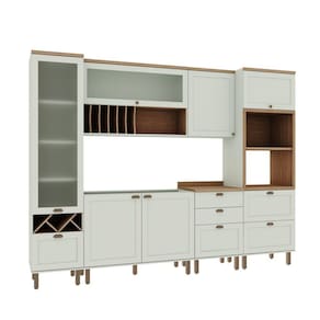 Possui dobradiças de 35mm com amortecimento, aéreos com 830mm de alturas, gavetas com corrediças telescópicas proporcionando maior abertura. Este produto foi desenvolvido para atender os mais criteriosos usuários aliando funcionalidade com elegância. Acabamento da Prateleira: Pintura Texturizada UV Escala de Brilho da Prateleira: Fosco Acabamento da Gaveta: Pintura Texturizada UV Escala de Brilho da Gaveta: Fosco Material do Puxador da Gaveta: ABS Acabamento da Porta: Pintura Escala de Brilho da Porta: Fosco Material do Puxador da Porta: ABS Acabamento dos Pés: Pintura Acompanha Tampo: Não Altura dos Pés: 1700000000 cm Altura Máxima dos Pés: 1700000000.0000 Ambiente Principal: Cozinha codigo_ean: 7909903077740 Complexidade da Montagem: Média: pode ser montado por mais de uma pessoa e/ou necessite de maior conhecimento para montagem Cor: Verde Mint/Ébano Cor do Produto: Verde Mint/Ébano Cor Flex: Não Cor Interna: Verde Mint Escala de Brilho: Fosco Gaveta com Chave: Não Itens Inclusos: 1 Cristaleira, 2 Armários Aéreos, 1 Paneleiro Torre Quente, 2 Balcões, Kit Ferragens e Manual de Montagem Linha ou Coleção: Iluminata - Genialflex Manual de Montagem e Instalação: https://product-hub-prd.madeiramadeira.com.br/741254/documents/cee3447a-1a92-4e9f-8616-5894e02c8d67982415cb0036.pdf Material da Dobradiça/Corrediça da Porta: Alumínio Material da Gaveta: MDF Material da Porta: MDF Material da Prateleira: MDF Material dos Pés: ABS Medida de cada item (A x L x P): Cristaleira porta de Vidro (2,30x50x52) Aereo de 1,20 (78x29,8x1,20) Balcao de 1,20 (91x1,20x52) Aereo de 60 (78x60x31) Balcão de 60 (91x60x52) Kit 2 fornos (2,30x70x52) modular: Não Montagem Flex: não Necessita Montagem: Sim O Balcão Acompanha Pia: Não Origem do Produto: Nacional Pés Reguláveis: Sim Peso: 206,2 kg Peso Máximo por Gaveta: 7 kg Peso Máximo por Prateleira: 7 kg Possui Pés: 17 Possui Portas: Sim Possui Prateleiras: Sim Possui recorte para Cooktop: Não Possui Rodízio: Não Produto Montado: Sim Recomendações de Uso, Manutenção e Limpeza: Limpar com pano umedecido Sapatas Niveladoras: Não Sistema de Montagem: Minifix e Parafusos Suporta Até (kg): 60 kg Tamanho Indicado da Pia: 1.2 Tamanho Indicado do Tampo: 1.2 Tipo de Corrediça da Gaveta: Metálica Telescópica Tipo de Dobradiça da Porta: Alumínio Tipo de Dobradiça/Corrediça da Porta: Soft close Tipo de Puxador da Gaveta: Externo Tipo de Puxador da Porta: Externo