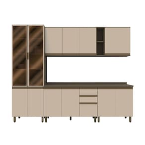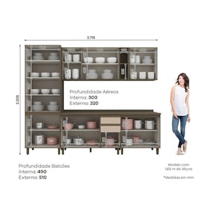 Medida de cada item (A x L x P): Aéreo: (AxLxP) 67,5cm X 20cm X 31,5cm, Aéreo: 67,5cm X 60cm X 31,5cm, Aéreo: 67,5cm X 120cm X 31,5cm, Balcão: 82cm X 80cm X 51cm, Balcão: 82cm X 120cm X 51cm, Cristaleira: 220,5cm X 71,5cm X 51,5cm