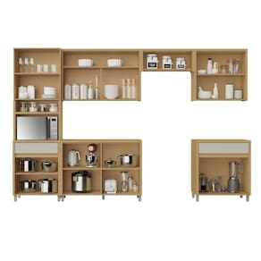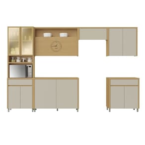 Que tal dar um upgrade na sua cozinha com esse conjunto que tem estilo e praticidade? É quase como ter um assistente de design com bom gosto! Com armários, balcões e prateleiras que estão prontas para exibir suas escolhas preferidas e também esconder a bagunça do dia a dia. E o relógio embutido? Só pra te lembrar que a comida não vai se cozinhar sozinha! Organizado, moderno e cheio de personalidade – é a cozinha que sua casa sempre sonhou, mas nunca teve coragem Acabamento da Prateleira: Impressão Escala de Brilho da Prateleira: Semi-Brilho Acabamento da Gaveta: Impressão Escala de Brilho da Gaveta: Semi-Brilho Acabamento da Porta: Impressão Escala de Brilho da Porta: Semi-Brilho Acompanha Tampo: Sim Altura dos Pés: 10 cm Ambiente Principal: Cozinha Complexidade da Montagem: Alta: deve ser montado por um montador especializado Cor: Carvalho/Greige Cor do Produto: Carvalho/Greige Escala de Brilho: Semi-Brilho Gaveta com Chave: Não Informações Complementares: Tampo 30mm; dobradiça 35mm e conforto tecnológico slow motion; Vidro reflecta no Paneleiro;Fundo dos armários de Duratree,produto super-resistente e anti-mofo. Itens Inclusos: 1 Cozinha, 1 Manual de Montagem e 1 Kit Ferragens. Manual de Montagem e Instalação: https://product-hub-prd.madeiramadeira.com.br/952308/documents/f7ed7277-cb4d-416a-bf1b-f557d72697fa237473373217272067714267.pdf Material da Dobradiça/Corrediça da Porta: Metálica Material da Gaveta: MDF Material da Porta: MDF Material da Prateleira: MDF Material do Fundo: Duratree Material do Tampo: MDF Material dos Pés: Plástico Medida de cada item (A x L x P): Paneleiro: 228x52x70 ; aéreo com relogio: 78x32x120; aéreo 2 portas: 78x32x80; aéreo geladeira: 34x32x80; balcao 2 portas: 91x52,5x120; balcao 2 portas 1 gaveta: 91x52x80 Necessita Montagem: Sim O Balcão Acompanha Pia: Não Origem do Produto: Nacional Pés Reguláveis: Sim Peso: 211,488 kg Peso Máximo por Gaveta: 5 kg Peso Máximo por Prateleira: 10 kg Possui Pés: 13 Possui Portas: Sim Possui Prateleiras: Sim Possui recorte para Cooktop: Não Possui Rodízio: Não Recomendações de Uso, Manutenção e Limpeza: Utilizar pano macio levemente umedecido e na sequencia pano macio seco. Sapatas Niveladoras: Sim Sistema de Montagem: Parafusos e Cavilhas Suporta Até (kg): 175 kg Tipo de Corrediça da Gaveta: Telescópica Tipo de Dobradiça da Porta: 35 mm Tipo de Puxador da Gaveta: Embutido Tipo de Puxador da Porta: Embutido
