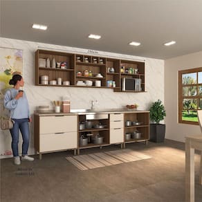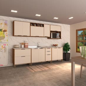 Desenvolvida com materiais de excelencia, a Cozinha Aspen oferece excelente distribuicao de espaco interno para sua organizacao. E fabricada em 100 MDP e possui acabamento das portas em BP oferecendo durabilidade, resistencia a riscos e facil manutencao. Conta com puxadores tipo Alca em Aluminio Preto dando um toque especial de classe e sofisticacao ao ambiente.