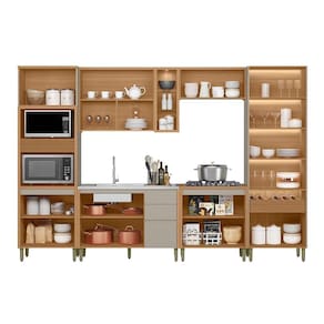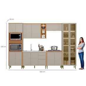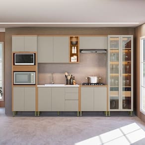 A Cozinha Allure, composta por 6 módulos, combina charme e funcionalidade em um conjunto moderno. Fabricada 100% em MDF, oferece excelente resistência e acabamento de alta qualidade. Possui dobradiças com sistema de amortecimento, puxadores embutidos que reforçam o visual elegante, além de uma cristaleira sofisticada com iluminação em LED e garrafeiro embutido. Também inclui uma torre com detalhe canelado, armário aéreo com nichos decorativos e spot de luz, e um balcão de 1,20m sem tampo, ideal para acomodar pia. É a escolha certa para quem deseja uma cozinha organizada, prática e cheia de estilo. Acabamento da Prateleira: Pintura Texturizada UV Escala de Brilho da Prateleira: Fosco Acabamento da Gaveta: Pintura Texturizada UV Escala de Brilho da Gaveta: Fosco Acabamento da Porta: Pintura Texturizada UV Escala de Brilho da Porta: Fosco Acompanha Rodapé Decorativo: Não Acompanha Tampo: Não Altura dos Pés: 16,5 cm Altura Máxima dos Pés: 16.5000 Ambiente Principal: Cozinha Balcão Suporta Pia: Sim codigo_ean: 7900288191656 Complexidade da Montagem: Média: pode ser montado por mais de uma pessoa e/ou necessite de maior conhecimento para montagem Cor: Jequitibá/Gris Fosco Cor do Produto: Jequitibá/Gris Fosco Cor Interna: Jequitibá Escala de Brilho: Fosco Espessura do Material da Estrutura: 15 mm Gaveta com Chave: Não Itens Inclusos: 1 Cozinha Completa, Kit Ferragem e Manual de Montagem Linha ou Coleção: Allure Manual de Montagem e Instalação: https://product-hub-prd.madeiramadeira.com.br/812450492/documents/1a8ef09d-be97-4326-a231-3b51511e510430615366231175209397545.pdf Marca: Linea Brasil Material da Corrediça: Metálica Material da Dobradiça/Corrediça da Porta: Metálica Material da Gaveta: MDF Material da Porta: MDF Material da Prateleira: MDF Material do Fundo: mdf Material dos Pés: Plástico Medida de cada item (A x L x P): Torre Quente: 230x70x52,balcao: 89x120x52,aereo: 78x120x33,balcao: 89x80x52,aereo: 39x80x33,cristaleira: 230x70x52 modular: Sim Necessita Montagem: Sim O Balcão Acompanha Pia: Não Origem do Produto: Nacional Pés Reguláveis: Sim Peso: 231,64 kg Peso Máximo por Gaveta: 5 kg Peso Máximo por Prateleira: 5 kg Possui Pés: 17 Possui Portas: Sim Possui Prateleiras: Sim Possui recorte para Cooktop: Não Possui Rodízio: Não Possui Vidro: Sim Produto Montado: Sim Recomendações de Uso, Manutenção e Limpeza: Pano Seco Sapatas Niveladoras: Não Sistema de Montagem: Parafusos, Cavilhas e Minifix Tamanho Indicado da Pia: 120x52 Tamanho Indicado do Tampo: 1,20x0,52 Tipo de Corrediça da Gaveta: Metálica Telescópica Tipo de Dobradiça da Porta: Soft close Tipo de Dobradiça/Corrediça da Porta: Soft Close Tipo de Puxador da Gaveta: Embutido Tipo de Puxador da Porta: Embutido