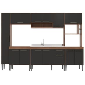 Transforme sua casa com esta cozinha modulada que une elegância e praticidade em cada detalhe. Com acabamento em branco e detalhes madeirados, ela traz um visual moderno, clean e acolhedor. As portas e gavetas possuem puxadores no tom bronze que garantem um toque sofisticado e facilitam o uso no dia a dia.