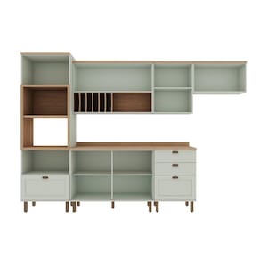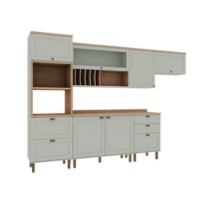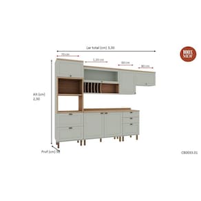 Possui um aéreo de 1200 com porta pratos e vidros no estilo mini boreal. Acabamento da Prateleira: Pintura Texturizada UV Escala de Brilho da Prateleira: Fosco Acabamento da Gaveta: Pintura Texturizada UV Escala de Brilho da Gaveta: Fosco Material do Puxador da Gaveta: ABS Acabamento da Porta: Pintura Texturizada UV Escala de Brilho da Porta: Fosco Material do Puxador da Porta: ABS Acabamento: Pintura UV Acabamento dos Pés: Pintura Acompanha Tampo: Sim Altura dos Pés: 17 Ambiente Principal: Cozinha Complexidade da Montagem: Média: pode ser montado por mais de uma pessoa e/ou necessite de maior conhecimento para montagem Cor: Verde Mint/Ébano Cor do Produto: Verde Mint/Ébano Cor Flex: Não Cor Interna: Verde Mint Escala de Brilho: Fosco Gaveta com Chave: Não Informações Complementares: Itens Inclusos: 1 Torre Quente, 2 Balcões, 3 Armários Aéreos, Kit Ferragens e Manual de Montagem Linha ou Coleção: Iluminata Manual de Especificação Técnica: Manual de Montagem e Instalação: https://cdn2.madeiramadeira.com.br/atributo/genialflex-moveis/981387-cb0033.pdf Material da Gaveta: MDF Material da Pia: Material da Porta: MDF Material da Prateleira: MDF Material do Fundo: MDF Material do Tampo: MDF Material dos Pés: ABS Medida de cada item (A x L x P): Kit 2 Fornos (230x70x52cm) Aéreo de 1,20 (78x1,20x29,8) Balcão de 1200 (91x1,20x52) Aéreo de 60CM (78x60x31,5) Balcão de 60 cm (91x60x52) Aéreo de 80 cm ( 78x80x31,5) Medida do Recorte para Cooktop: Montagem Flex: não Necessita Montagem: Sim O Balcão Acompanha Pia: Não Origem do Produto: Nacional Pés Reguláveis: Sim Peso: 186.6 Peso Máximo por Gaveta: 7 Peso Máximo por Prateleira: 7 Possui Pés: 13 Possui Portas: 08 Possui Prateleiras: 02 Possui recorte para Cooktop: Não Possui Rodízio: Não Recomendações de Uso, Manutenção e Limpeza: Limpar com pano umedecido Rodízio com Trava: Sapatas Niveladoras: Sim Sistema de Montagem: Minifix e Parafusos Suporta Até (kg): 55 Tamanho Indicado da Pia: Tamanho Indicado do Tampo: Tipo de Corrediça da Gaveta: Metálica Telescópica Tipo de Dobradiça da Porta: Alumínio Tipo de Madeira Maciça: Tipo de Madeira Maciça da Gaveta: Tipo de Madeira Maciça da Porta: Tipo de Madeira Maciça da Prateleira: Tipo de Madeira Maciça do Puxador da Gaveta: Tipo de Madeira Maciça do Puxador da Porta: Tipo de Madeira Maciça dos Pés: Tipo de Porta: Misto (Bater e Basculante) Tipo de Puxador da Gaveta: Externo Tipo de Puxador da Porta: Externo