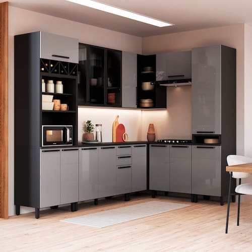 A Cozinha Diamante 8P Alto combina design moderno, funcionalidade e excelente aproveitamento de espaço. Composta por 8 peças, oferece ampla capacidade para organização de utensílios, mantimentos e eletrodomésticos. Seu formato alto otimiza o espaço e valoriza o ambiente. Produzida com materiais de qualidade, garante durabilidade, resistência e praticidade para o uso diário, sendo ideal para quem busca uma cozinha completa, elegante e eficiente. Acabamento da Prateleira: Pintura Texturizada UV Escala de Brilho da Prateleira: Fosco Acabamento da Gaveta: Pintura Texturizada UV Escala de Brilho da Gaveta: Semi-Brilho Material do Puxador da Gaveta: Alumínio Acabamento da Porta: Pintura Texturizada UV Escala de Brilho da Porta: Semi-Brilho Material do Puxador da Porta: Alumínio Acompanha Rodapé Decorativo: Não Acompanha Tampo: Sim Ambiente Principal: Cozinha Balcão Suporta Pia: Sim codigo_ean: 7900288320414 Complexidade da Montagem: Alta: deve ser montado por um montador especializado Cor: Cinza/Titânio Cor do Produto: Cinza/Titânio Cor Interna: Cinza/Titânio Escala de Brilho: Acetinado Espessura do Tampo: 22 mm Gaveta com Chave: Não Informações Complementares: suporta 280 kilos espalhados Itens Inclusos: 1 Cozinha Completa, Kit Ferragens e Manual de Montagem Linha ou Coleção: Diamante Manual de Montagem e Instalação: https://product-hub-prd.madeiramadeira.com.br/631532934/documents/8664c3c6-909b-47bb-996a-688547150fb2337160474617696926195479.pdf Marca: Indekes Material da Corrediça: Metálica Material da Dobradiça/Corrediça da Porta: Metálica Material da Gaveta: MDP Material da Porta: MDP/Vidro Material do Tampo: MDP Medida de cada item (A x L x P): armario geladeira: 45,2x80x32 armario 1,20:90,5x 120x32 bl 1,20 : 93x120x53 armario canto: 90,5x96x32 bl80:93x80x53 bl canto:93x96x53 paneleiro: 240x50x53 kit 2 fornos:240x70x53 modular: Sim Necessita Montagem: Sim O Balcão Acompanha Pia: Não Origem do Produto: Nacional Peso: 317,2 kg Peso Máximo por Gaveta: 5 kg Peso Máximo por Prateleira: 5 kg Possui Pés: 21 Possui Portas: Sim Possui Prateleiras: Sim Possui recorte para Cooktop: Não Possui Vidro: Sim Produto Montado: Sim Recomendações de Uso, Manutenção e Limpeza: Não limpar com álcool ou qualquer outro produto quimico. Utilize somente pano seco ou levemente umedecido. Sistema de Montagem: Cavilhas de madeira e parafusos tipo "fixer" especialmente desenvolvido para madeira. Suporta Até (kg): 40 kg Tamanho Indicado da Pia: 120X53 Tipo de Corrediça da Gaveta: Metálica Telescópica Tipo de Dobradiça da Porta: Soft close Tipo de Puxador da Gaveta: Externo Tipo de Puxador da Porta: Externo