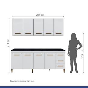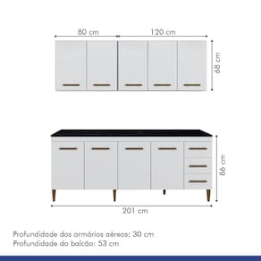 Medida de cada item (A x L x P): Balcão - 86cm x 201cm x 53cm