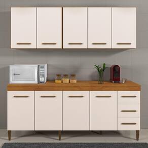 Cozinha Completa 9 Portas E 3 Gavetas Atenas Kaiki Moveis Nature/Off White