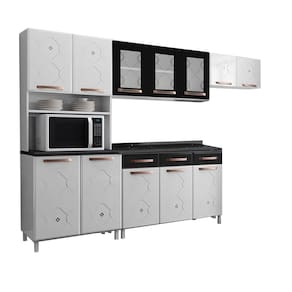 Está em busca de uma cozinha completa, robusta e desenvolvida com qualidade? Então a Mirage é a sua marronhor opção. Composto por quatro peças, esse é um móvel muito espaçoso, que permite acomodar panelas, louças, travessas ou alimentos - de maneira organizada e funcional. Um destaque aqui é módulo Kit: com espaço para micro-ondas, forno ou qualquer eletro que você precise ter sempre ao alcance das mãos – de forma prática e ergonômica, ele é amplo e robusto. Já o armário aéreo é um daqueles módulos queridinhos para armazenar e também decorar a cozinha, além dos belos vidros serem serigrafados e temperados, para maior segurança. O balcão é muito funcional, possui tampo de MDP e amplo espaço interno. A beleza das delicadas serigrafias harmoniza com os apliques em alto relevo e os puxadores na "cor" Rosé – em alta na decoração.enbsp;