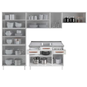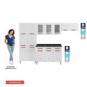 Cozinha Aço Completa Telasul Mirage New Bco 3Vidros Balcão p/ Pia