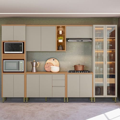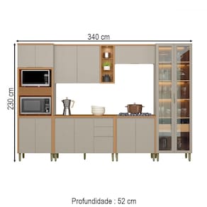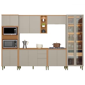 O(a) Cozinha Completa Allure 14 Portas 4 Gavetas 100% Mdf com Vidro 810016097 Jequitibá/Gris - Linea Brasil é produzido em 100% MDF na escala de brilho Impressão UV, e possui um grau de dificuldade de montagem: Médio.