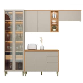 O(a) Cozinha Completa Allure 7 Portas 4 Gavetas 100% Mdf com Vidro Jequitibá/Gris - Linea Brasil é produzido em 100% MDF na escala de brilho Impressão UV, e possui um grau de dificuldade de montagem: Médio.