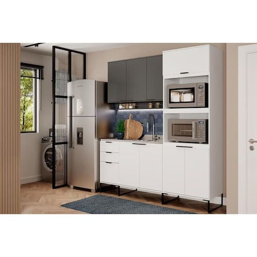 Cozinha Completa Alpha 3 Peças (1Aéreo+1Balcão+1TorreQuente) C3P74 Branco/Cinza Titanio - Carraro - Blush