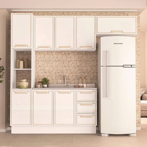O(a) Cozinha Completa Amara 8 Portas 3 Gavetas 40250084 Branco - Politorno é produzido em MDF e MDP na escala de brilho Semi-Fosco, e possui um grau de dificuldade de montagem: Médio.