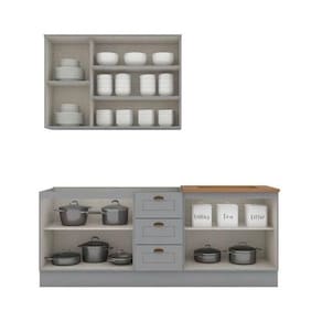 Cozinha Completa Americana (1 Aéreo, 2 Balcões, 1 Complemento) 4 Peças Cinza - Henn Abaixo segue os produtos do KIT: Cozinha Completa Americana (1 Aéreo, 2 Balcões, 1 Complemento) 4 Peças Cinza - Henn Tampo p/ Balcão Cozinha Americana 80cm Cooktop Nature - Henn