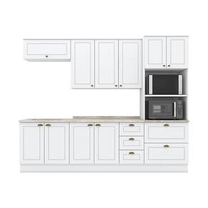Cozinha Completa Americana (2 Aéreos, 2 Balcões, 1 Paneleiro, 2 Complemento) 7 Peças Branco - Henn Abaixo segue os produtos que compoem o KIT: - Tampo p/ Balcão Cozinha Americana 80cm Cooktop Calcare - Henn - 1 unidades Dimensões: Alt: 3cm x Larg54cm x Comp/Profund:54cm