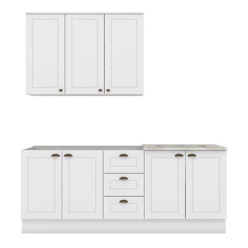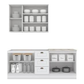 Cozinha Completa Americana 3 Peças Com Aéreo 3 Portas Branco - Móveis Henn Branco Cozinha Completa Americana 3 Peças com Aéreo 3 Portas - Móveis Henn Com design contemporâneo, a Cozinha Americana embeleza qualquer ambiente. Seu conceito é inspirado nas clássicas cozinhas estilo americano, oferecendo uma decoração moderna e minimalista. Ela conta com puxadores em metal zamac, dobradiças 35mm com amortecimento e espaçosos aéreos com 83cm de altura, proporcionando praticidade e funcionalidade. É um armário de cozinha 100% MDF com mais de 15 módulos, que possibilitam criar o projeto de cozinha dos seus sonhos. ESPECIFICAÇÕES: - Estrutura 100% MDF - Pintura UV - 7 Portas - Dobradiças de 35mm com amortecimento - 3 Gavetas - Corrediças telescópicas - Puxadores em zamac ouro velho - Tampos em MDP/BP - Opção de instalação sem rodapés, suspensa - Balcão Pia não acompanha cuba e tampo