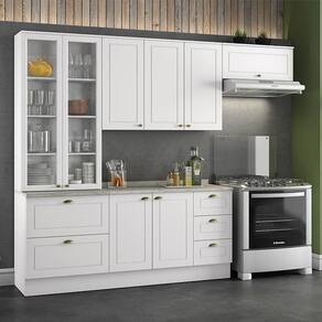 Cozinha Completa Americana 4 Peças Branco Com Cristaleira - Móveis Henn Branco