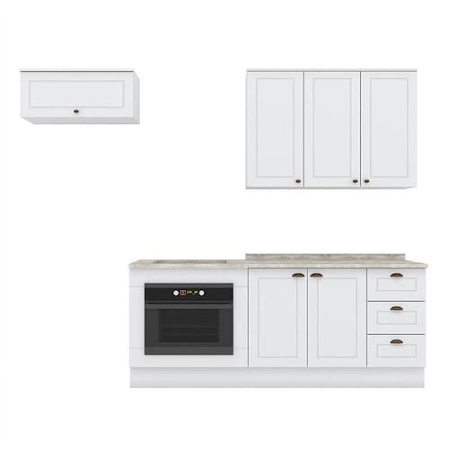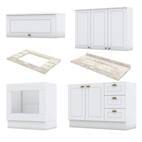 Cozinha Completa Americana 4 Peças Com Balcão Forno De Embutir Branco E Tampo Cooktop - Móveis Henn Branco