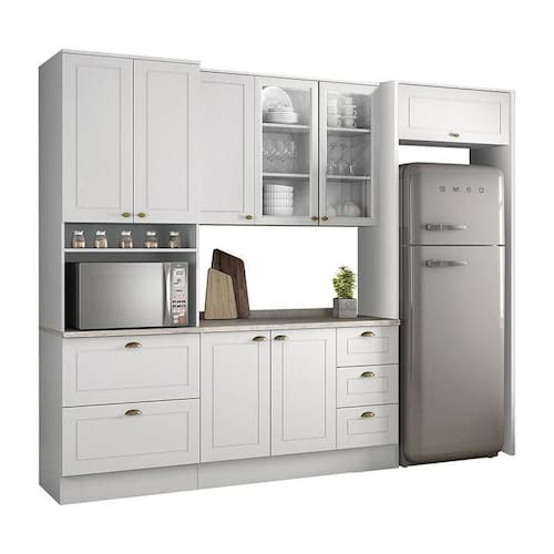 Cozinha Completa Americana 4 Peças Com Lateral Branco - Móveis Henn Branco