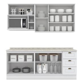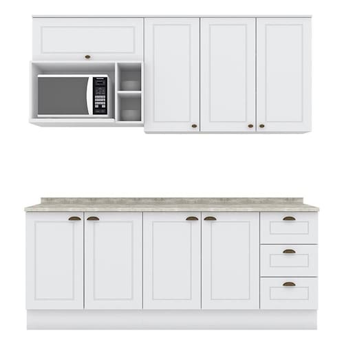 Cozinha Completa Americana 5 Peças Com Aéreo Micro-ondas Branco E Tampo Calcare - Móveis Henn Branco