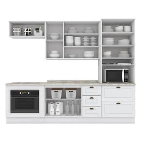 Cozinha Completa Americana 5 Peças Com Balcão Forno De Embutir Branco E Tampo Calcare - Móveis Henn Branco