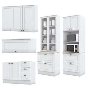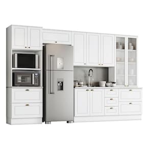 Cozinha Completa Americana 5 Peças Com Cristaleira Branco - Móveis Henn Branco