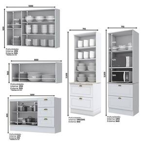 - Espaço para eletrodoméstico: 1- 42,4 x 68,4 x 48,0 cm e 2- 38,6 x 68,4 x 53,3 cm