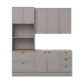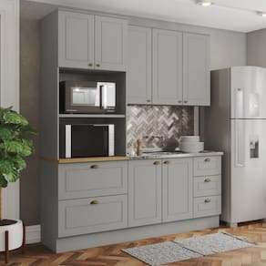 O(a) Cozinha Completa Americana 7 Portas 5 Gavetas 100% Mdf Cinza/Nature - Henn é produzido em 100% MDF na escala de brilho Fosco, e possui um grau de dificuldade de montagem: Médio.