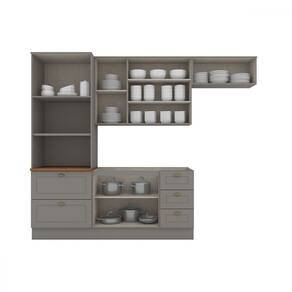 O(a) Cozinha Completa Americana 8 Portas 5 Gavetas Cinza Hp - Henn é produzido em MDF na escala de brilho Fosco, e possui um grau de dificuldade de montagem: Médio.