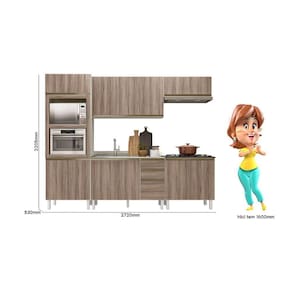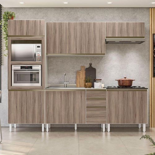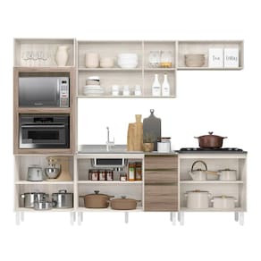 Cozinha 100% MDF com um designer moderno, possui uma excelente qualidade, seus puxadores de alumínio trazem ainda mais sofisticação para o ambiente. Pertence a linha premium da , e conta com corrediças telescópicas, dobradiças com amortecimento para não ocorrer batida brusca nas portas e pistão a gás no basculante.