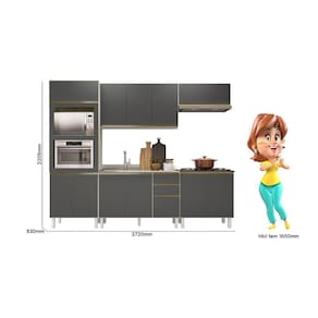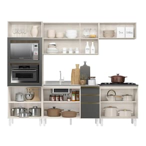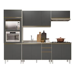 Cozinha 100% MDF com um designer moderno, possui uma excelente qualidade, seus puxadores de alumínio trazem ainda mais sofisticação para o ambiente. Pertence a linha premium da , e conta com corrediças telescópicas, dobradiças com amortecimento para não ocorrer batida brusca nas portas e pistão a gás no basculante.