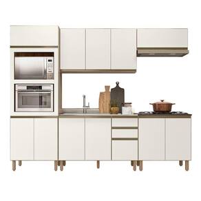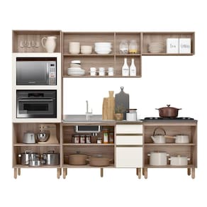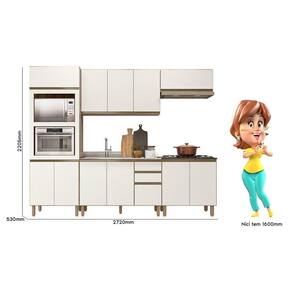 Cozinha 100% MDF com um designer moderno, possui uma excelente qualidade, seus puxadores de alumínio trazem ainda mais sofisticação para o ambiente. Pertence a linha premium da , e conta com corrediças telescópicas, dobradiças com amortecimento para não ocorrer batida brusca nas portas e pistão a gás no basculante.