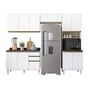Cozinha 100% MDF com um designer moderno, possui uma excelente qualidade, seus puxadores de alumínio trazem ainda mais sofisticação para o ambiente. Pertence a linha premium da Nicioli, e conta com corrediças telescópicas, dobradiças com amortecimento para não ocorrer batida brusca nas portas e pistão a gás no basculante.