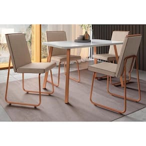 Sala de Jantar Completa Ariel Menor 1602 Tampo Madeirado c/ Vidro 120x80cm e 4 Cadeiras Lira Gelo/Off White Rose - Cobre/Linho Areia/Courin - Carraro Abaixo segue os produtos do KIT: Sala de Jantar Completa Ariel Menor 1602 Tampo Madeirado c/ Vidro 120x80cm e 4 Cadeiras Lira Gelo/Off White Rose - Cobre/Linho Areia/Courin - Carraro