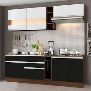 - Itens inclusos: Um Balcão de Pia com duas gavetas e uma porta (Não acompanha tampo deste balcão) | Um Porta-Panos com tampo em MDP | Um Balcão com duas portas e tampo em MDP | Um Armário Aéreo com duas portas com detalhe em vidro reflex | Um Armário Aéreo com uma porta basculante | Uma Adega