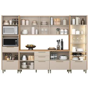 Cozinha Completa Atenas 6 Peças (2Aéreos+2Balcões+1Cristaleira+1TorreQuente) CP02 Jequitiba/Off White Fosco - Linea Brasil Abaixo segue os produtos que compoem o KIT:
