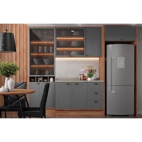 Cozinha Completa Bella 6 Peças (2Aéreos+1Balcão+1Cristaleira+2Complementos) C6P51 Nogal/Cinza - Carraro