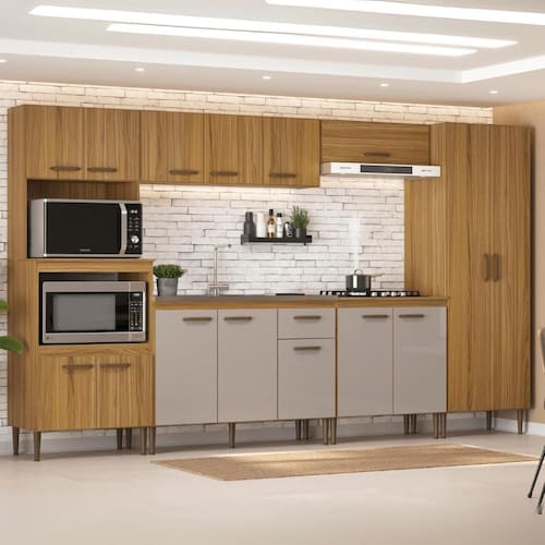 A Linha Berlim foi desenvolvida para facilitar o seu dia a dia, com manuseio ergonômico e amplo espaço de armazenamento. Nessa coposição com quatro peças em 2,35m de largura e 2m de altura. Sua distribuição de espaços para facilitar o acesso aos produtos, eletrodomésticos e utensílios. Tem espaço para cooktop de até 5 queimadores e espaço para pia de 1,20m. Possui portas com puxador em ABS na cor champagne e detalhe decorativo. Seus pés possuem detalhe hexagonal e regulagem de altura para melhor nivelamento. Confira as demais peças da Linha Berlim e monte sua cozinha ideal.