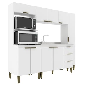 Cozinha Bia 4 peças J Carvalho na cor Branco 193 cm de altura composta por 9 portas e três gavetas sendo 8 das portas de bater e 1 basculante. Com dobradiças e corrediças metálicas, espaço para micro A41 X L60 X P45 e Forno A41 X L60 X P 53. Seu ambiente vai ficar muito mais lindo com a nossa cozinha Bia. Acabamento da Prateleira: Finish Foil Escala de Brilho da Prateleira: Fosco Acabamento da Gaveta: Finish Foil Escala de Brilho da Gaveta: Fosco Material do Puxador da Gaveta: Plástico Acabamento da Porta: Finish Foil Escala de Brilho da Porta: Fosco Material do Puxador da Porta: Plástico Acabamento dos Pés: Polipropileno Acompanha Rodapé Decorativo: Não Acompanha Tampo: Não Altura dos Pés: 17 cm Altura Máxima dos Pés: 17.0000 Ambiente Principal: Cozinha Balcão Suporta Pia: Sim codigo_ean: 7900288004512 Complexidade da Montagem: Média: pode ser montado por mais de uma pessoa e/ou necessite de maior conhecimento para montagem Cor: Branco Cor do Produto: Branco Cor Flex: Não Cor Interna: Branco Escala de Brilho: Fosco Espessura do Material da Estrutura: 15 mm Gaveta com Chave: Não Itens Inclusos: 1 Cozinha completa + kit ferragem + manual QR Code impresso na embalagem e no kit ferragem de cada item Linha ou Coleção: 2025 Manual de Especificação Técnica: https://product-hub-prd.madeiramadeira.com.br/958204/documents/bcf74d56-7c7f-42bd-9fa5-4999c813db6e2520949266217302965968418.pdf Manual de Montagem e Instalação: https://product-hub-prd.madeiramadeira.com.br/958204/documents/2374688b-6484-4f21-8cba-9711caf93ece2477837266217292717998439.pdf Marca: j carvalho Material da Dobradiça/Corrediça da Porta: Metálica Material da Gaveta: MDP Material da Porta: MDP Material da Prateleira: MDP Material do Fundo: T-HDF Material dos Pés: Polipropileno Medida de cada item (A x L x P): Balcão A87 x L120 x P52 Aéreo A42x L120 x P28 Paneleiro A193 x L37 x P28 - Torre quente A193 x L63 P53 modular: Não Montagem Flex: Não Necessita Montagem: Sim O Balcão Acompanha Pia: Não Origem do Produto: Nacional Pés Reguláveis: Sim Peso: 108,9 kg Peso Máximo por Gaveta: 7 kg Peso Máximo por Prateleira: 7 kg Possui Pés: 13 Possui Portas: Sim Possui Prateleiras: Sim Possui recorte para Cooktop: Não Possui Rodízio: Não Possui Vidro: Não Produto Montado: Sim Recomendações de Uso, Manutenção e Limpeza: Flanela umedecida Sapatas Niveladoras: Sim Sistema de Montagem: parafusos Suporta Até (kg): 120 kg Tamanho Indicado da Pia: 120X53 Tamanho Indicado do Tampo: 120X53 Tipo de Corrediça da Gaveta: Simples Tipo de Dobradiça da Porta: Simples Tipo de Puxador da Gaveta: Externo Tipo de Puxador da Porta: Externo