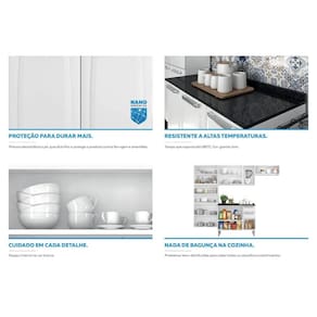 A Cozinha Itatiaia Luce é perfeita para você que procura organizar o seu ambiente e aproveitar bem o seu espaço, mantendo o design clássico, que nunca sai de moda. Conta com 5 portas de vidro e puxadores metalizados, garantindo beleza e resistência. Gavetas com corrediças telescópicas, que garante uma abertura e fechamento suave e seguro. Tampo resistente a altas temperaturas (até 180C) com alto brilho e textura de granito ônix. Prateleiras muito bem-distribuídas para caber louças, utensílios e panelas. Pintura eletrostática a pó, que proporciona durabilidade e resistência.