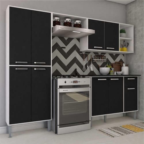 A Cozinha Completa Compacta com Armário e Balcão com Tampo Coimbra Multimóveis tem um excelente custo benefício e um amplo espaço interno. Os módulos são individuais e você pode montar da maneira que se adaptar melhor ao seu ambiente. Produzida em MDP, que garante maior durabilidade e resistência, conta com corrediças telescópicas em aço (maior durabilidade e travas de segurança para evitar acidentes), pés com regulagem de altura (permitem um perfeito nivelamento dos módulos), puxadores em ABS com acabamento cromado e tampos em MDP 15mm com pintura de alta resistência. Para deixar sua cozinha mais bonita e organizada, possui compartimento especial para utensílios mais altos e módulo aéreo com nichos. As portas embutidas proporcionam um visual de cozinha planejada.