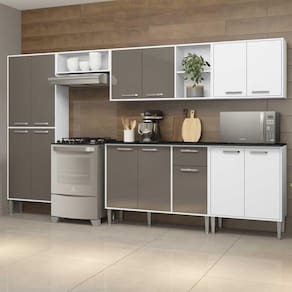 Conteúdo da Embalagem: 1 (um) nicho horizontal 1 (um) armário aéreo de 105 cm 1 (um) paneleiro duplo 1 (um) balcão com tampo de 105 cm 1 (um) balcão com tampo de 70 cm 1 (um) armário aéreo de 70 cm